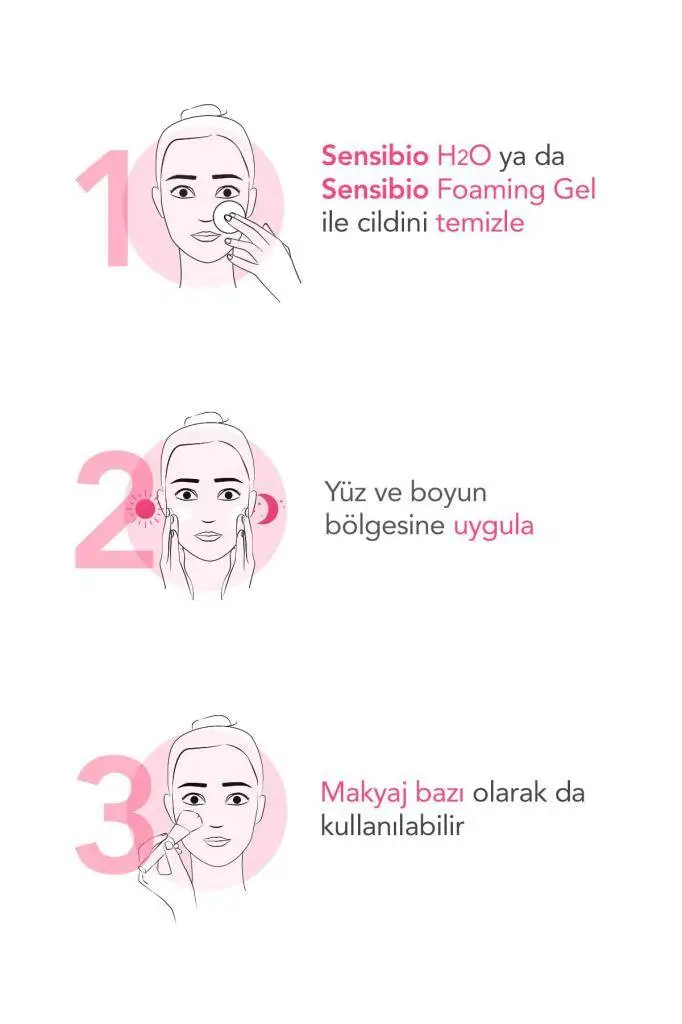 Sabah ve/veya akşam temizlenmiş cilde (yüz ve boyun bölgesi) ince bir tabaka halinde uygulayın. Parmak uçlarıyla dairesel hareketlerle cilde yedirerek masaj yapın. Güneş koruyucu ile kombinlenebilir veya makyaj altına baz olarak kullanılabilir.