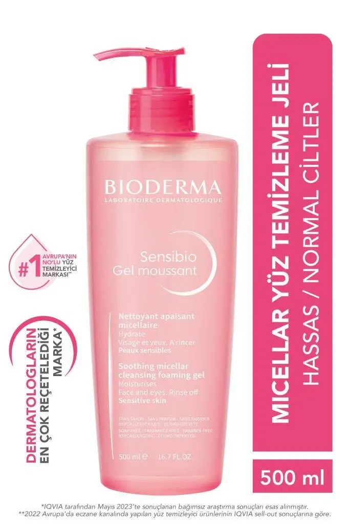 Bioderma Sensibio Foaming Jel 500 ml - Hassas Ciltler İçin Nemlendirici Yüz Temizleme Jeli