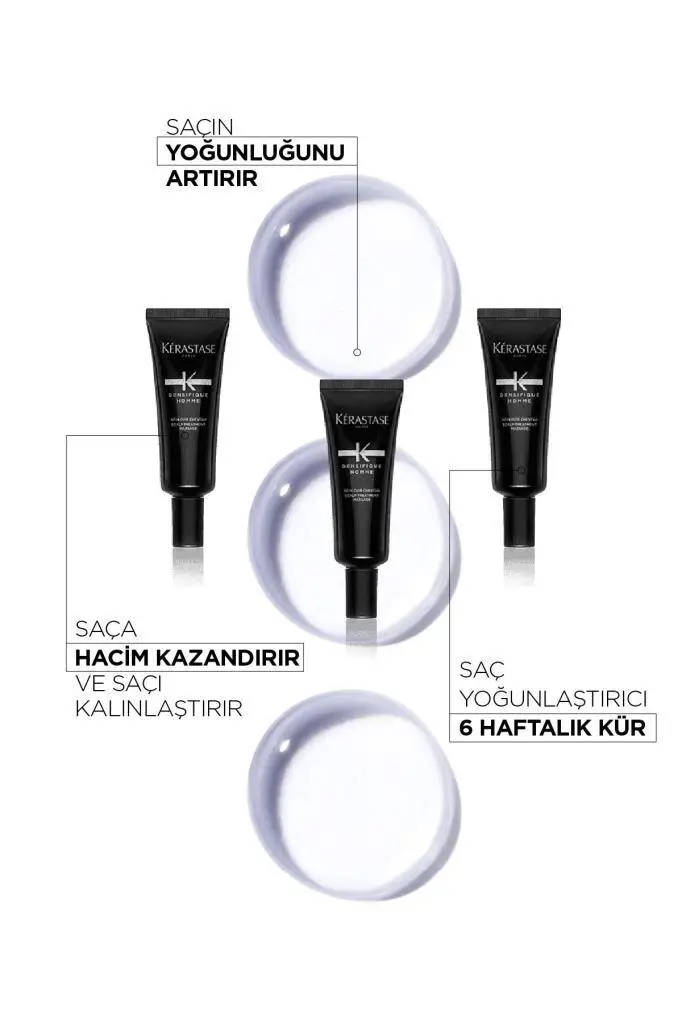Klinik Sonuçlar: 4.500 erkek katılımcıyla yapılan çalışmada, 6 haftada saç yoğunluğunda %78 memnuniyet oranı (Kérastase 2023 verileri).