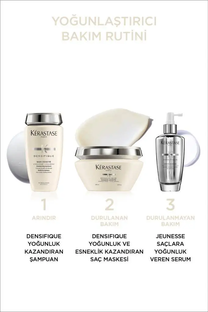 İnce Telli Saçlar: Yoğunluk artışı için Densifique Şampuan ve Maske ile kombinleyin.