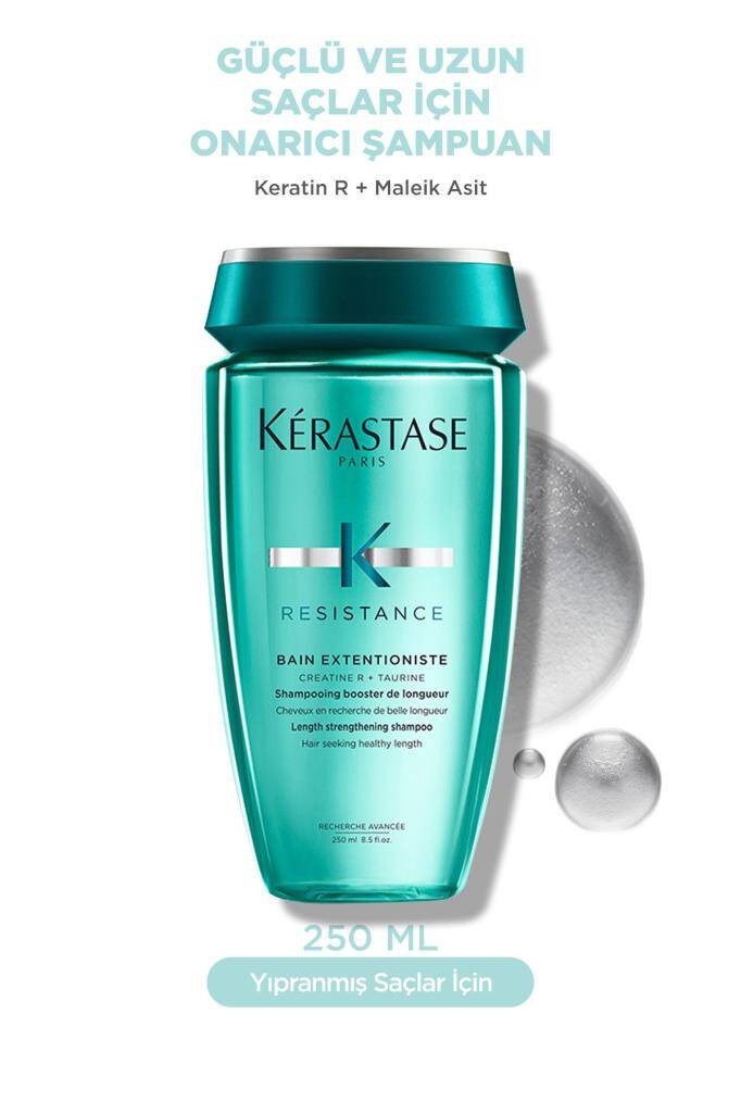 Kerastase Resistance Extentioniste Bain, uzayan ve kırılgan saçlar için özel olarak geliştirilmiş, saçı kökten uca güçlendiren ve kırık oluşumunu engelleyen bilimsel bir şampuandır. İçerdiği Protein Kompleksi ve Amino Asitler ile saçın yapısal bütünlüğünü korur, daha sağlıklı uzamasını destekler.