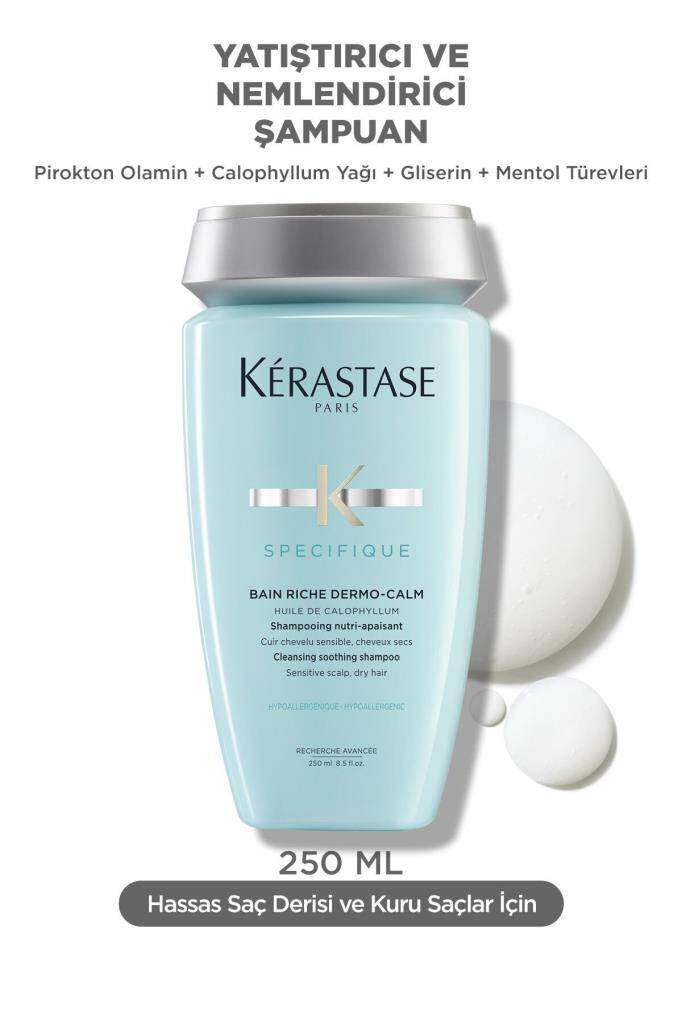 Kerastase Specifique Bain Riche Dermo-Calm Şampuan 250 ml – Kuru ve Hassas Saç Derisi İçin Yatıştırıcı ve Nemlendirici Bakım :Kerastase Specifique Bain Dermocalm Riche, kuru, kaşıntılı ve hassas saç derisi için klinik olarak geliştirilmiş, derin nemlendirme ve yatıştırıcı etki sunan bir şampuandır. İçerdiği Ceramide R, Hyaluronik Asit ve Bisabolol ile saç derisinin bariyer fonksiyonunu güçlendirir, rahatsızlık hissini azaltır ve uzun süreli rahatlık sağlar.