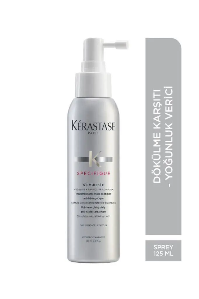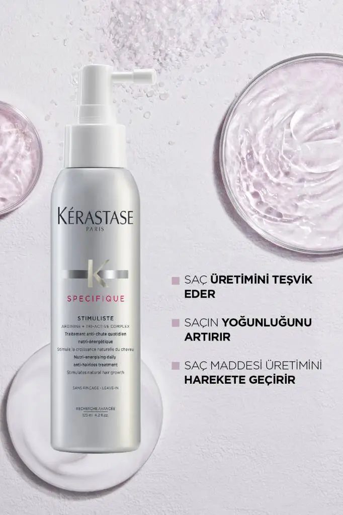 Kerastase Specifique Stimuliste, zayıf ve dökülme eğilimli saçlar için klinik olarak geliştirilmiş, saç köklerini uyaran ve yoğunluğu artıran yenilikçi bir saç spreyidir. İçerdiği Aminexil, Stemoxydine ve Kafein ile saçın büyüme döngüsünü destekler, dökülme oranını azaltır ve saç derisinin mikro dolaşımını hızlandırır.