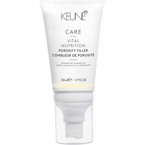 Keune Care Vital Nutrition Porosity Filler, gözenekli ve hasarlı saçlar için özel geliştirilmiş yoğun onarıcı bakım kremidir. "Porosity Repair" teknolojisi ile saç telindeki boşlukları doldurur, seramid ve buğday proteinleri sayesinde saçın yapısal bütünlüğünü güçlendirir.