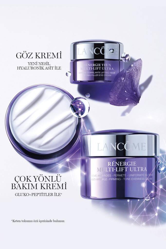 Lancôme'dan tek bir kremle yaşlanma belirtilerine karşı üçlü etki! Çok yönlü nemlendirici krem Rénergie Multi-Lift Ultra, en zorlu koşullarda bile varlığını sürdürmesiyle bilinen keten özü ile zenginleştirilmiş formülüyle yaşlanma belirtilerine etki eder: