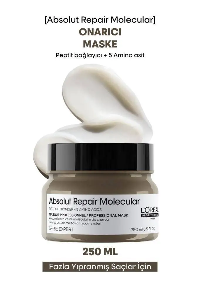 Ürün Adı: L'Oréal Professionnel Absolut Repair Molecular Yoğun Onarıcı Maske - Yıpranmış Saçlar İçin Moleküler Teknoloji & 72 Saat Nem 250ml
