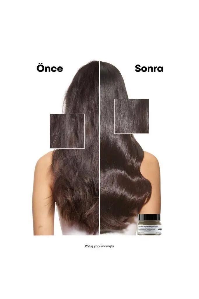 3 Aşamalı Sistem: Absolut Repair Molecular şampuan + maske + serum ile "Tam Onarım Sistemi" oluşturun.