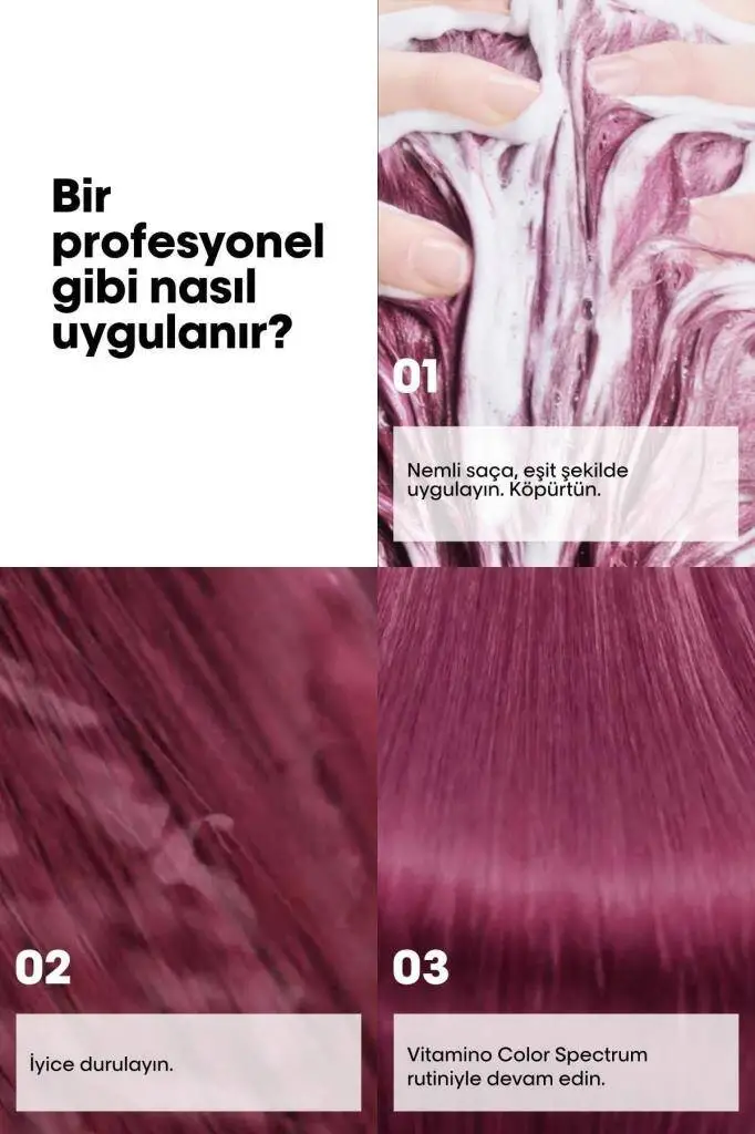 Vitamino Color Spectrum Saç Kremi ile tamamlayarak etkiyi 2 katına çıkarın.