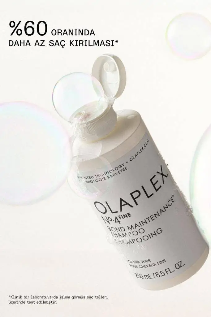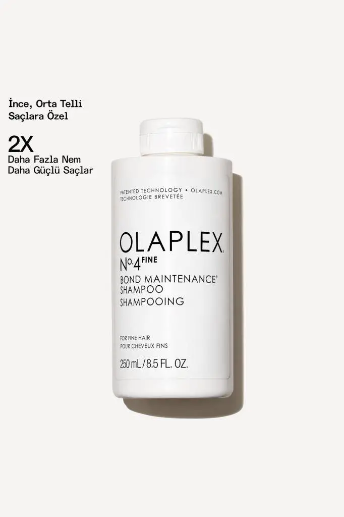 • iOlaplex No.4 Fine Bond Maintenance Shampoo ince telli saçlar için özel olarak geliştirilmiş, ağırlık yapmadan saçları temizleyen ve hacim veren bağ güçlendirici bakım şampuanıdır.