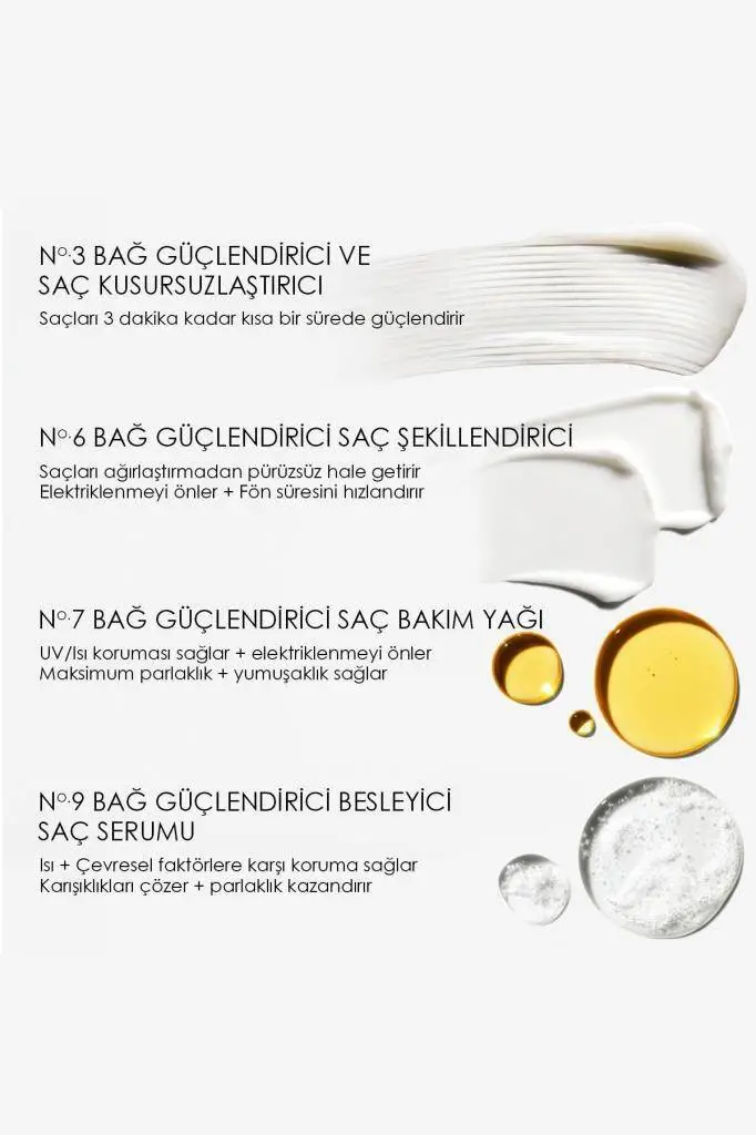 • Patentli bağ güçlendirme teknolojisi Bis-Aminopropyl Diglycol Dimaleate sayesinde saçtaki hasarları onarır.