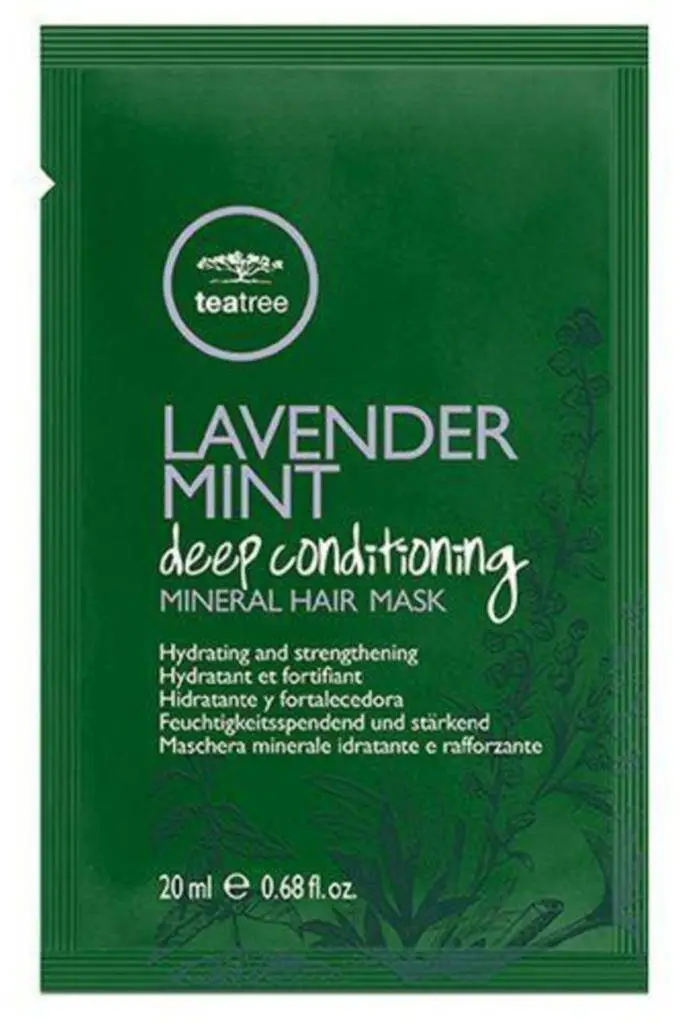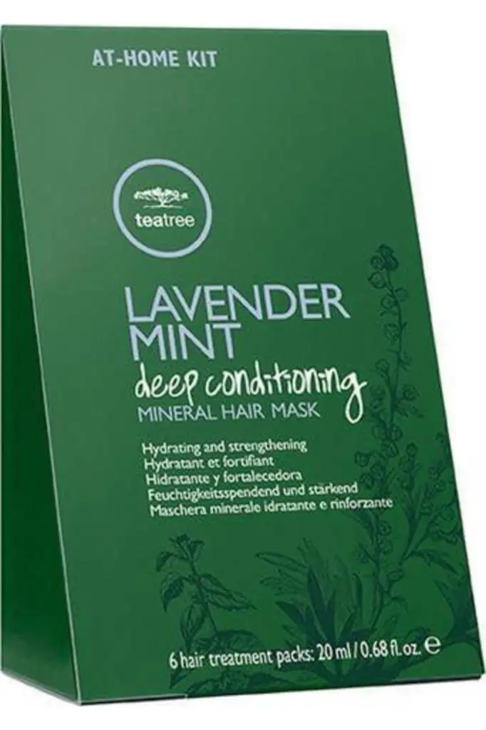 Paul Mitchell Lavender Mint Moisturizing Hair Mask, lavanta ve nane özleriyle zenginleştirilmiş, saçları derinlemesine nemlendirirken aynı zamanda rahatlatıcı aromaterapi etkisi sunan premium bir saç bakım ürünüdür. 6 adet 20ml'lik tek kullanımlık paketler halinde sunulur.